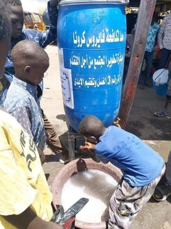 Corona Virus Control Project In partnership with the Nyala Without Corona Initiative, the Community Development Organization for Progress established (hand washing and sterilization centers and awareness in Nyala city markets June 2021.