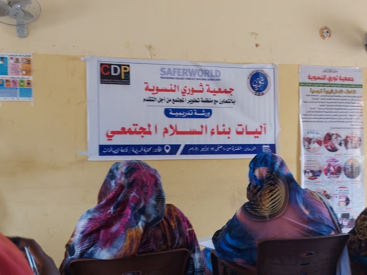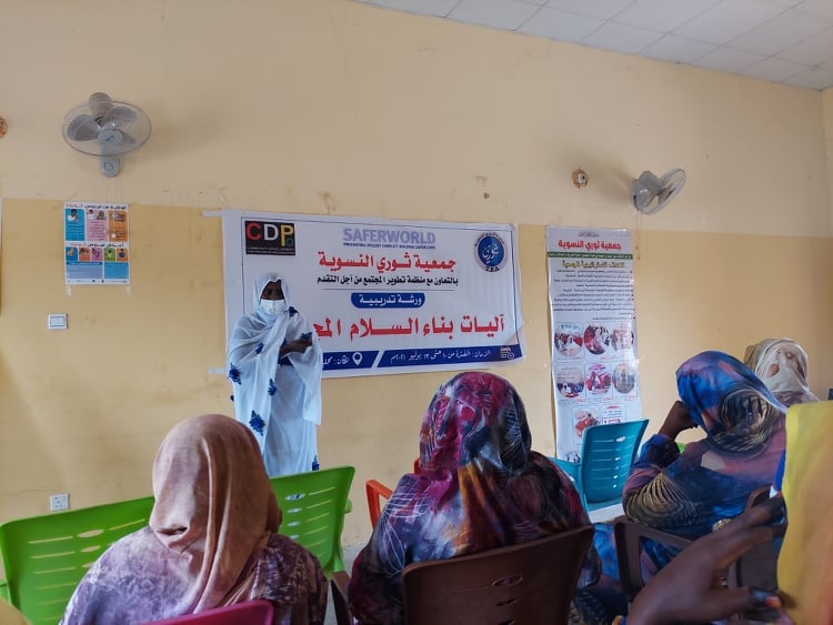 The Revolutionary Women's Association, in partnership with the Community Development for Progress Organization, organized a peacebuilding workshop in the Geraida area of south Darfur on July 11, 2021.