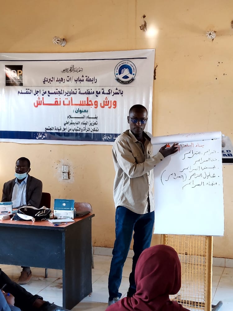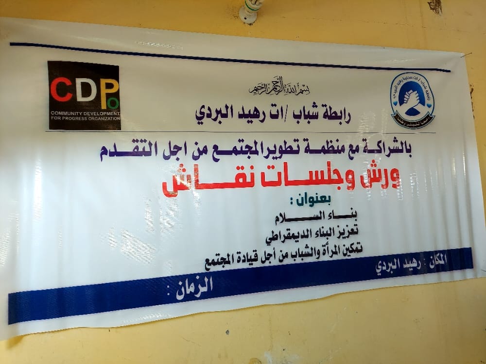 The Rehaid Al-Berdi Youth Association, in partnership with the Community Development for Progress Organization, held a series of workshops and discussion sessions on peacebuilding, promoting democratic institutions, and empowering women and youth in Rehaid Al-Berdi in December 2022.