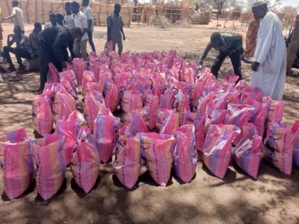On Wednesday, March 26, 2025, the Durrat Al Salam Association, in partnership with CDPO and with support from the Sunduq AL-Sudan, distributed food baskets to 252 displaced families whose homes were burned in late February in the Umm Balula IDPs camp in the city of Gereida, South Darfur State.