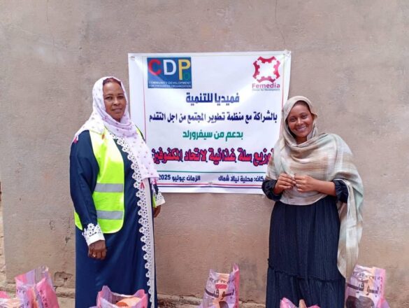 The F-media Center, in partnership with CDPO and with support from Saferworld, distributed 180 food baskets to families of people with visual disabilities in Nyala, capital of South Darfur, on Wednesday, July 2, 2025.
