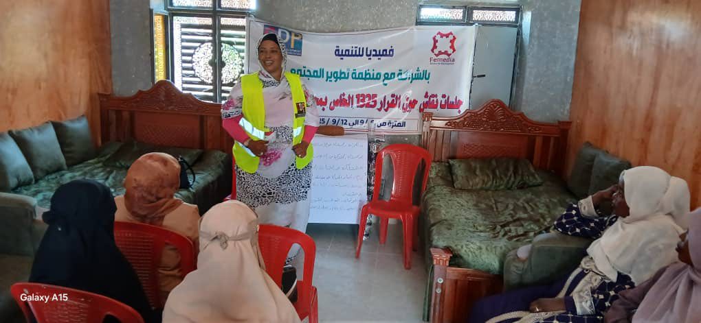 Vimedia Center, in partnership with the Solidarity Community Development Organization, organized a discussion on the innovative Resolution 1325, which was adopted on October 31, 2000. The discussion focused on women and solidarity, specifically on collaborating with women in peaceful liberation processes, integrating the Paulus approach into peacekeeping training, and ensuring women’s participation in incorporating gender perspectives. The two sessions were held in Nyala South and Nyala North, Nyala, South Darfur, from September 6 to 11, 2025. A number of female lawyers and activists in the field of protection participated in the sessions.
