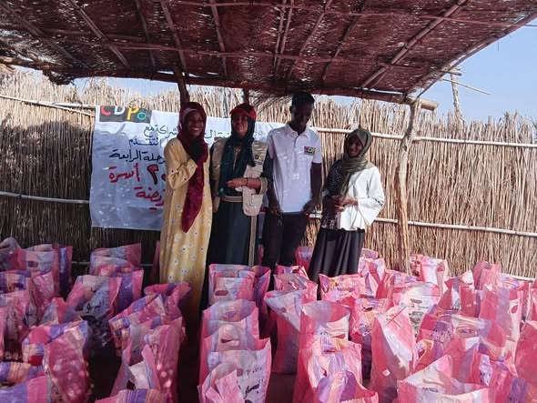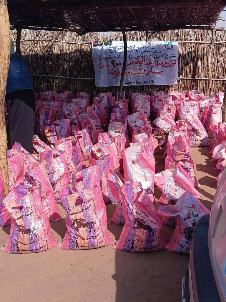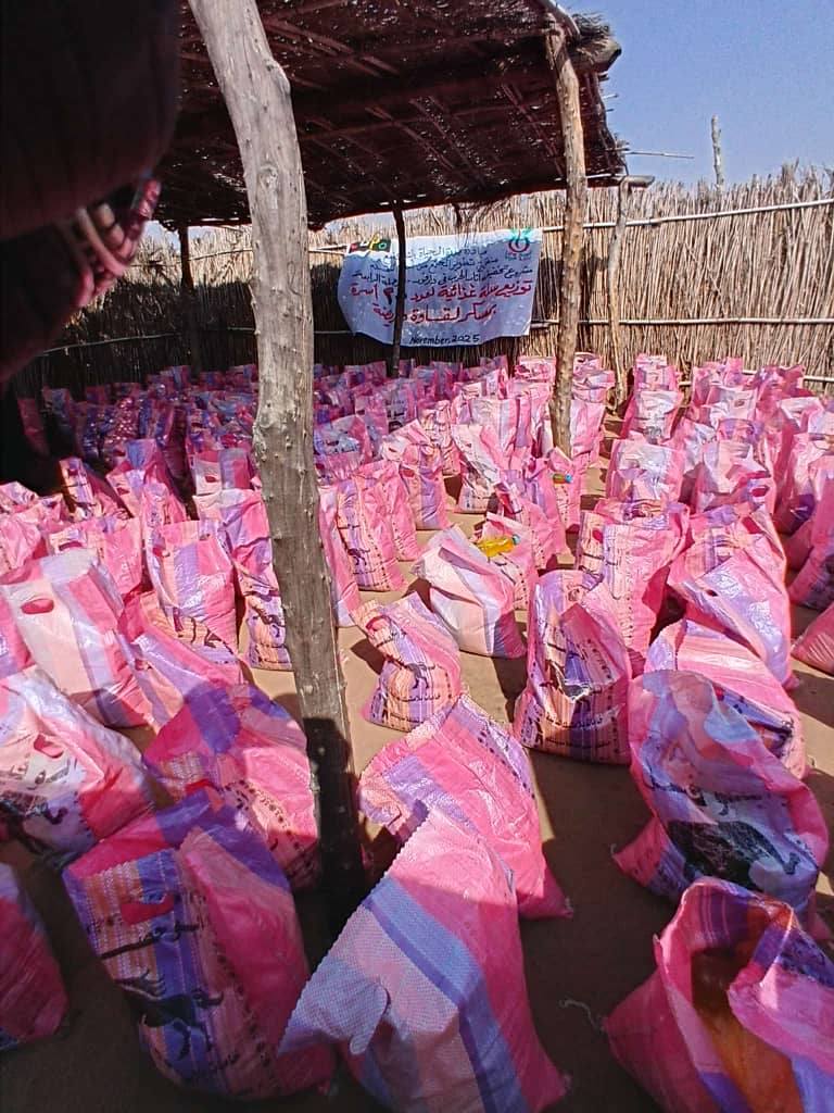 On Monday, December 1, 2025, the Bezra Al-Hayaa Initiative, in partnership with the Community Development Organization, distributed 200 food baskets to 200 newly displaced families from El Fasher, residing in the Lagawa and Gureida camps in El Daein, the capital of East Darfur.