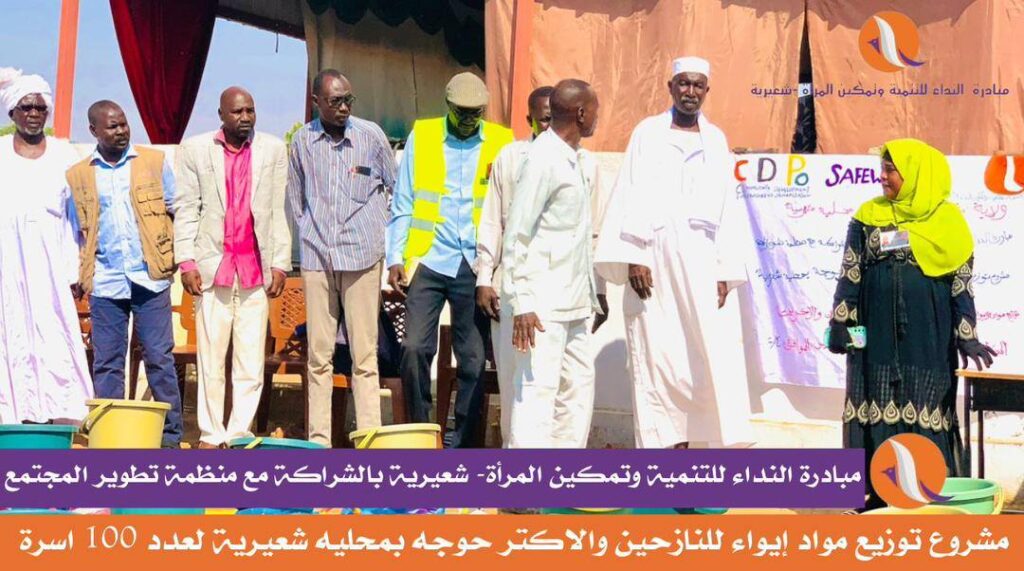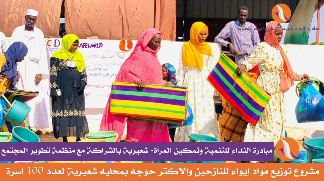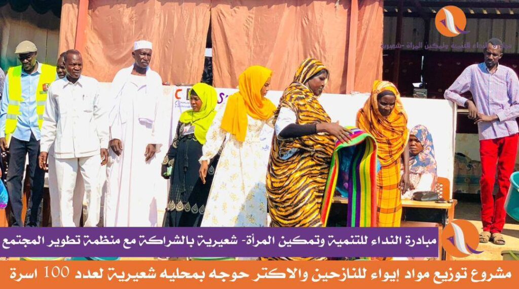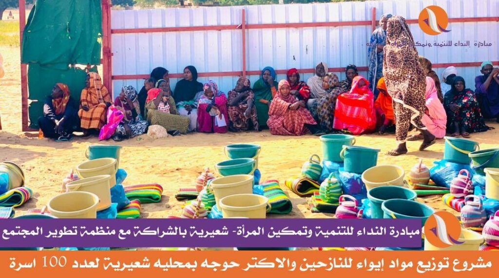 The Nidaa Initiative for Women's Empowerment, in partnership with the Community Development for Progress Organization, distributed non-food items to displaced people from El Fasher in the Sha'iriya area of East Darfur on Thursday, December 4, 2025.