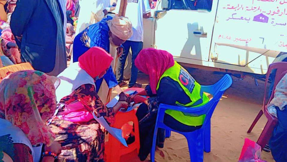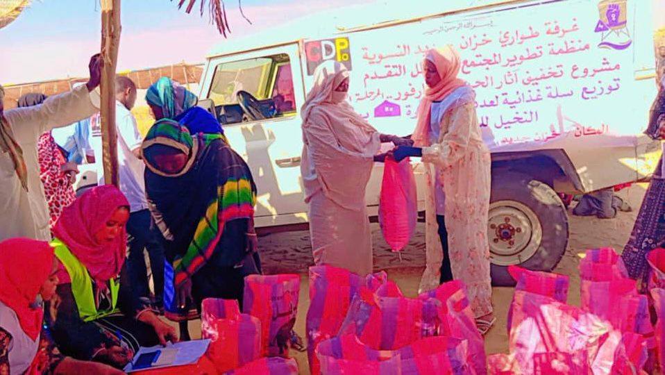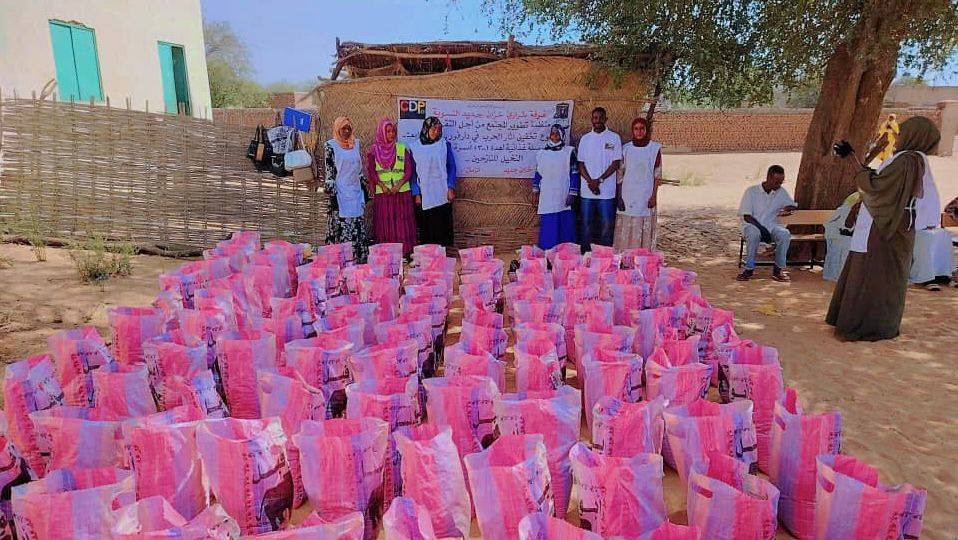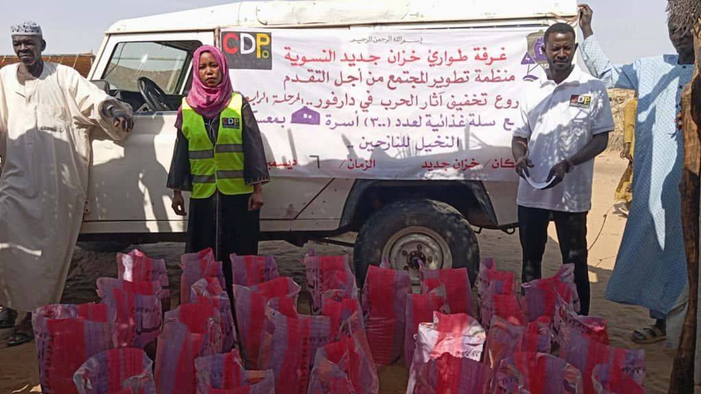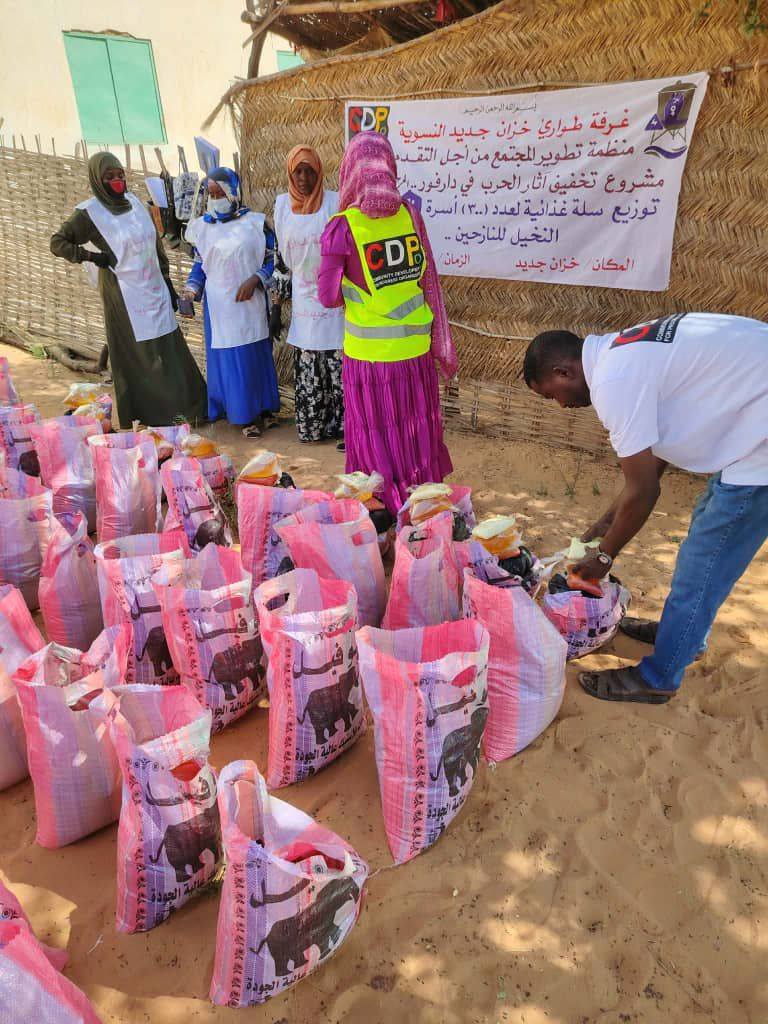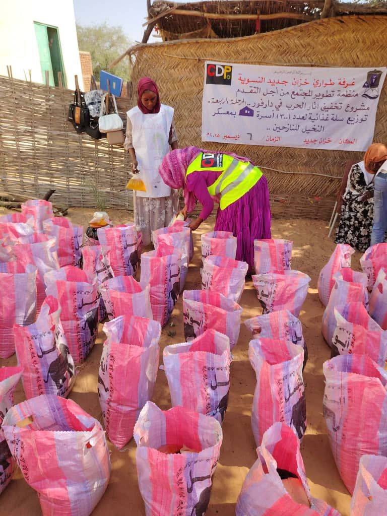 On December 8, 2025, the Khazan Jadid Women's Emergency Room, in partnership with the Community Development Organization, distributed 300 food baskets to displaced people from El Fasher in the Khazan Jadid area of Sha'iriya locality, East Darfur.
