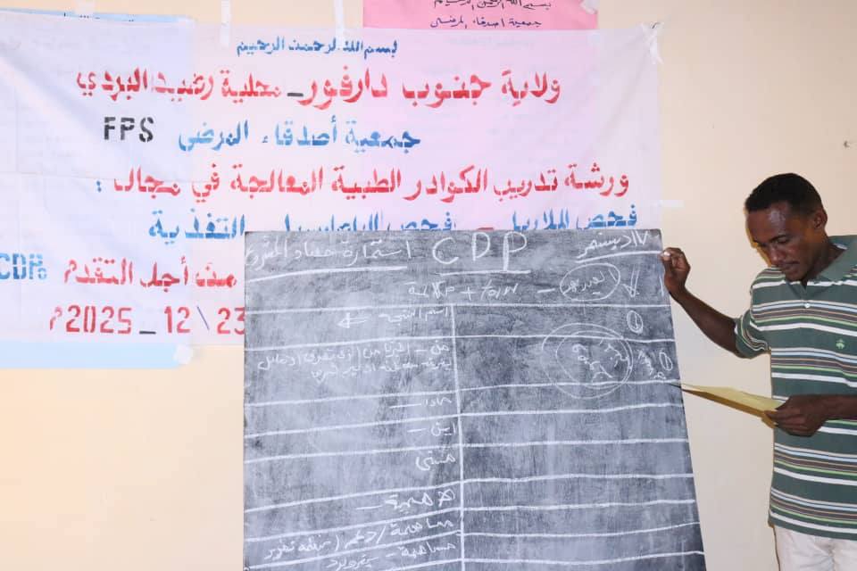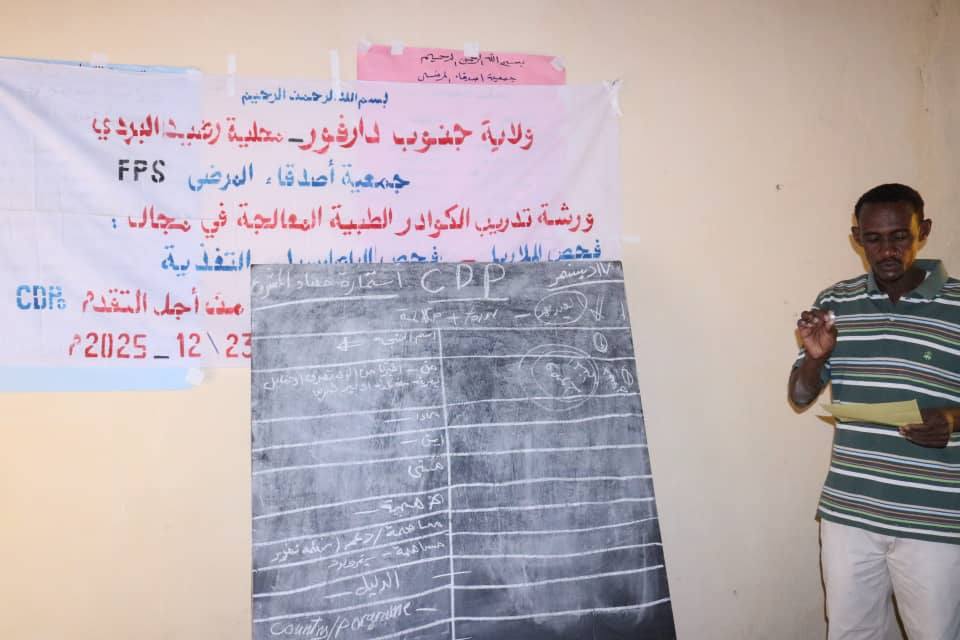 The Friends of Patients Association in Rehaid Al-Berdi, in partnership with the Community Development Organization, concluded a training workshop on Wednesday, December 17, 2025, for twenty health workers in the fields of nutrition and malaria and schistosomiasis screening. The workshop was held in the training hall at Rehaid Al-Berdi Rural Hospital.