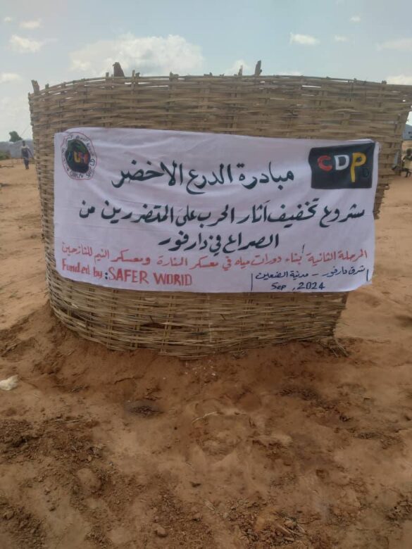 قامت مبادرة الدرع الاخضر بالشراكة مع منظمة تطوير المجتمع من اجل التقدم بدعم من سيفرورلد بتشييد ٢٠ مرحاض طارئ ١٠ مرحاض بمعسكر النيم ولقاوا للنازحين و١٠ مرحاض لمعسكر المنار للنازحين بالضعين عاصمة ولاية شرق دارفور في الفترة من ٥ الي ١٩ سبتمبر ٢٠٢٤ وذلك في إطار مشروع تخفيف آثار الحرب علي المتضررين من الصراع بجنوب وشرق دارفور المرحلة الثانية