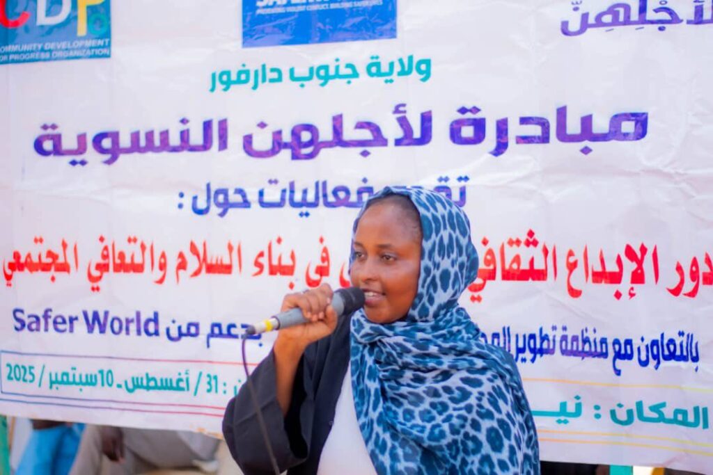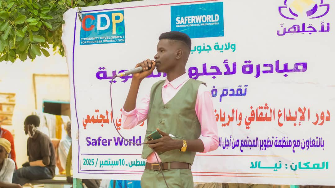 عقب ورشة دور الإبداع الثقافي والرياضي في بناء السلام التي نظمتها مبادرة لأجلهن بالشراكة مع منظمة تطوير المجتمع بنيالا مطلع سبتمبر الجاري ، قام عدد من الفنانين بتنظيم منتدى ترفيهي بمركز مهيرة للنازحين بمدينة نيالا بجنوب دارفور في ١١ سبتمبر ٢٠٢٥