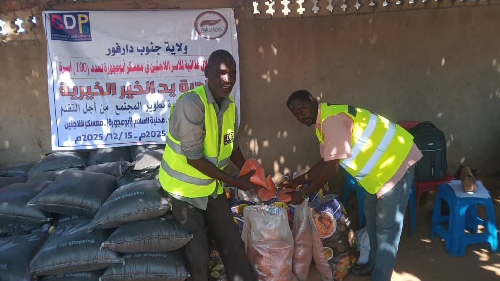 The Basma Youth Network, in partnership with the Community Development for Progress Organization, implemented a food basket distribution project on December 13, 2025, for 150 families in Adal Fursan and the Delib area of South Darfur.