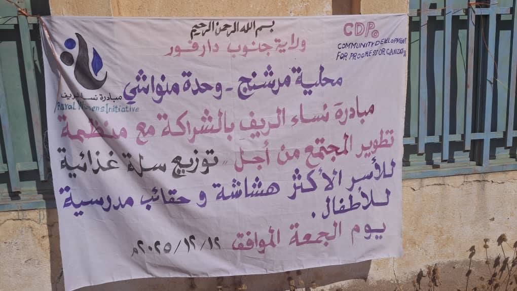 The Basma Youth Network, in partnership with the Community Development for Progress Organization, implemented a food basket distribution project on December 13, 2025, for 150 families in Adal Fursan and the Delib area of South Darfur.